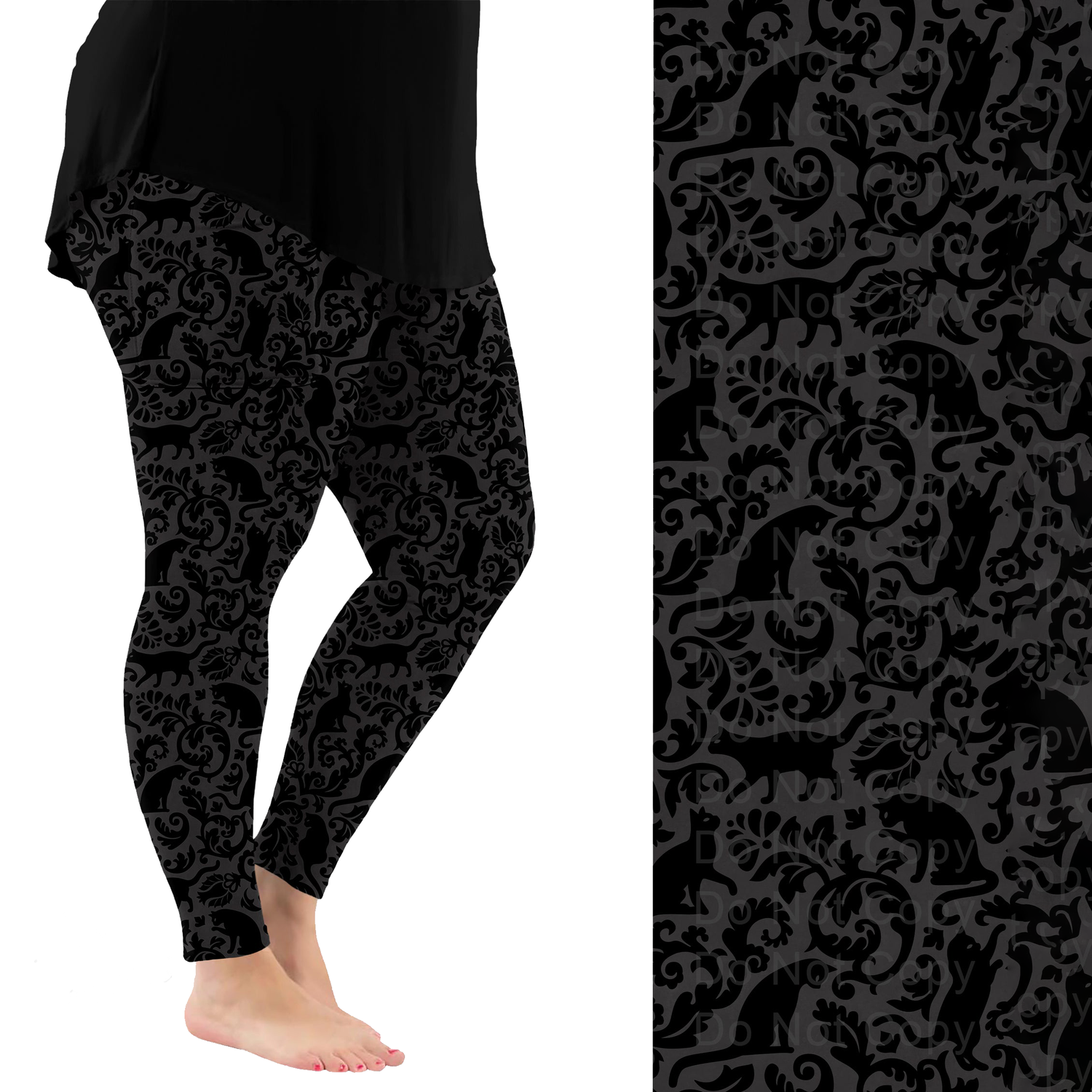 Cat Damask Leggings – Sophisticated Whimsy in Sleek Black