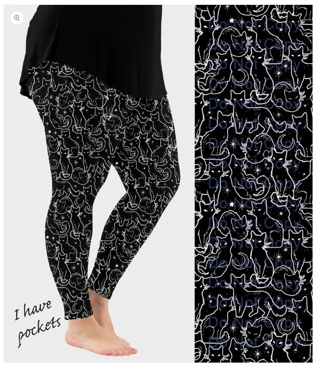 Wrap yourself in a little moonlit magic with these Celestial Cat Pocket Leggings. Adorned with elegant white line art of playful cats, crescent moons, and twinkling stars, this black-and-white print brings a touch of cosmic charm to your everyday look. Perfect for cat lovers and those drawn to witchy, celestial style, these leggings blend mystical energy with modern comfort.