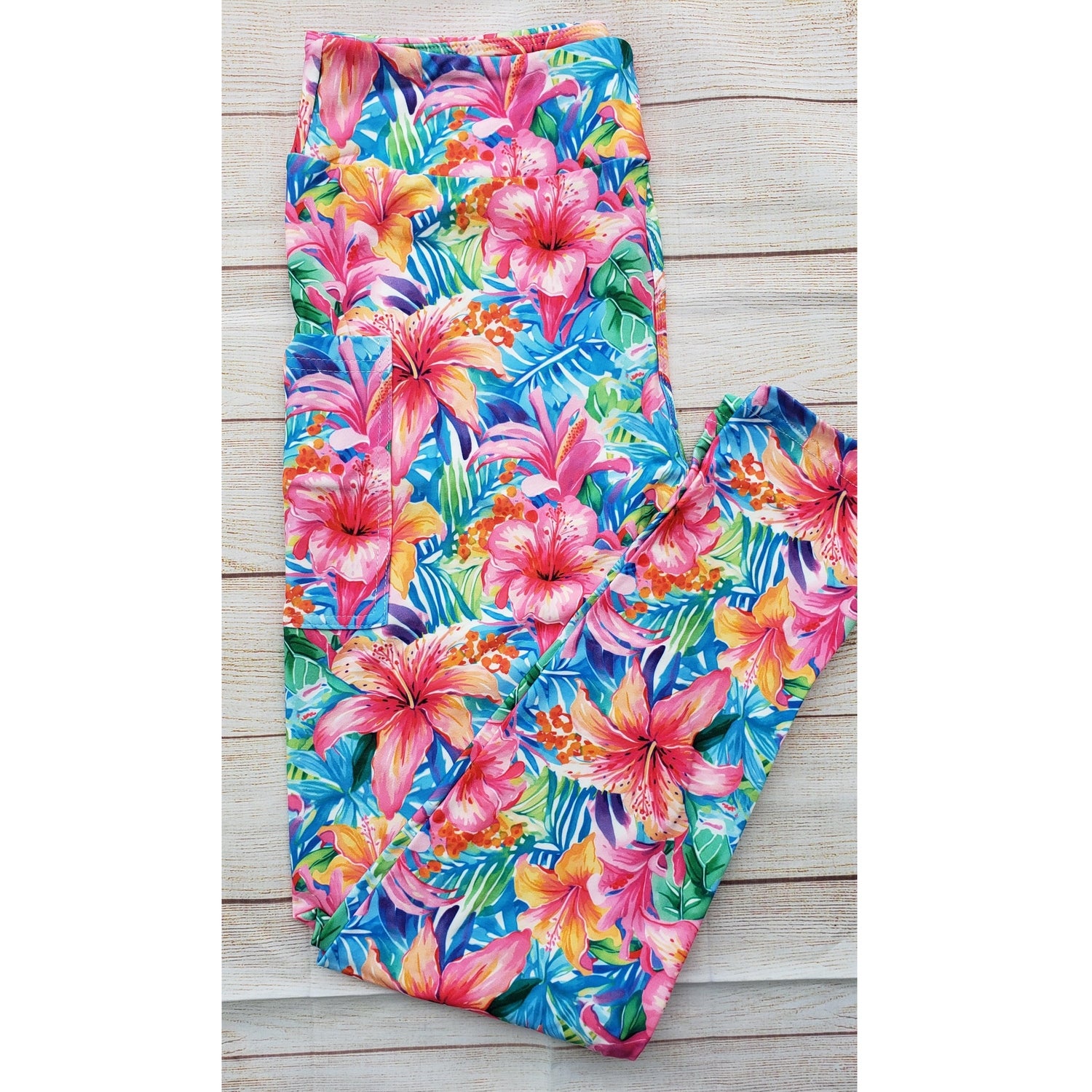 Whether you're soaking up the sun or just craving a burst of floral fun, the Island Bloom Capri Leggings are your go-to choice for color, comfort, and tropical flair.