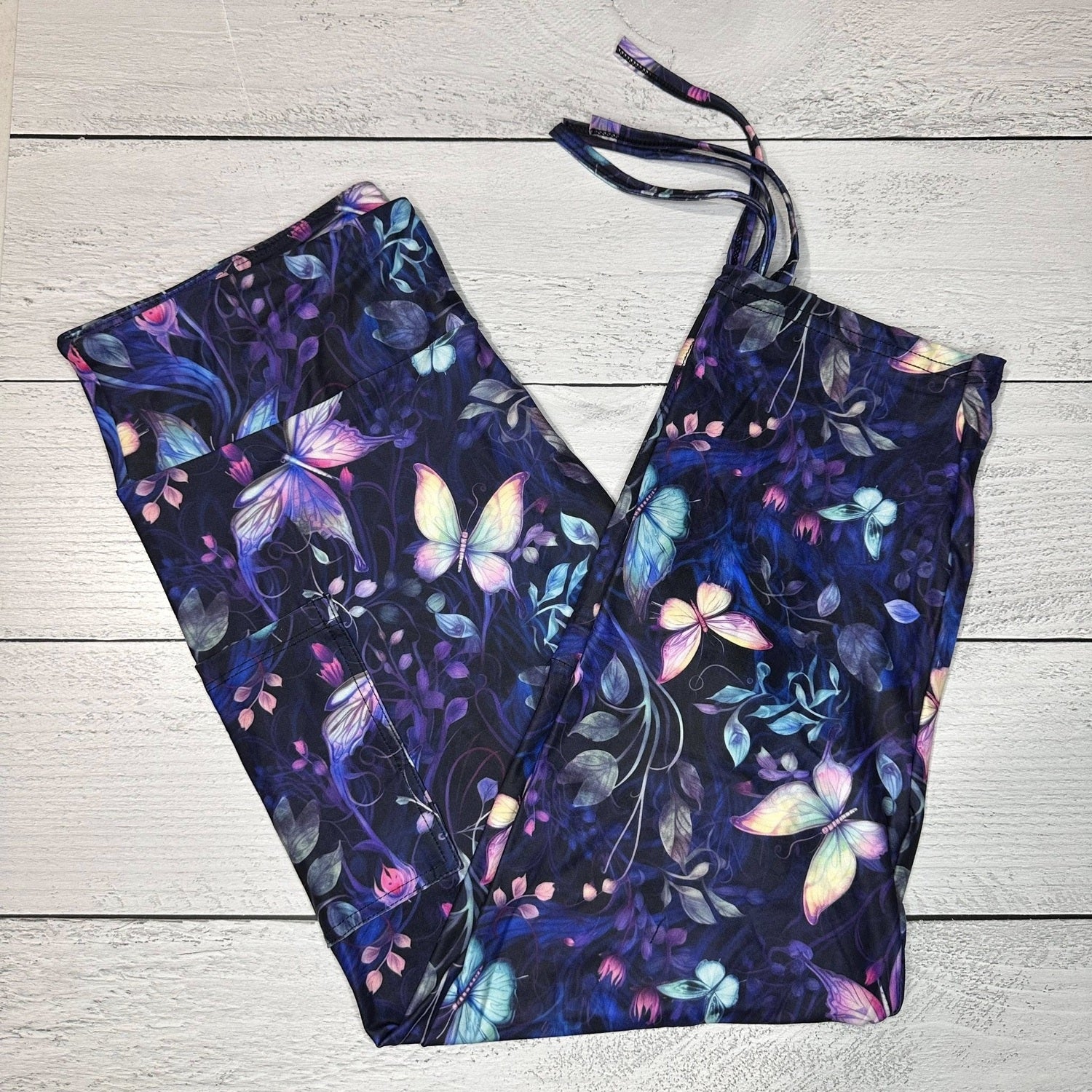 Moonlight Garden Leggings with Pockets – Adjustable Waistband & Enchanted Butterfly Print
