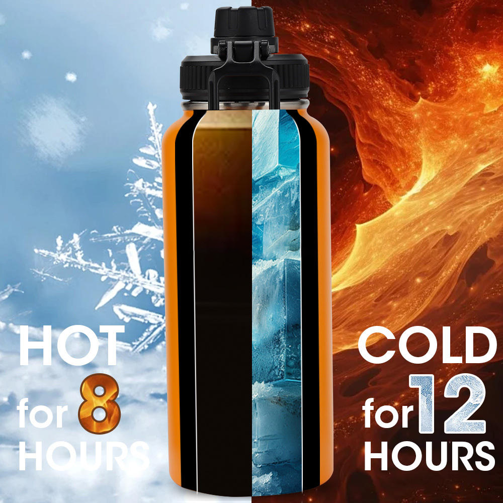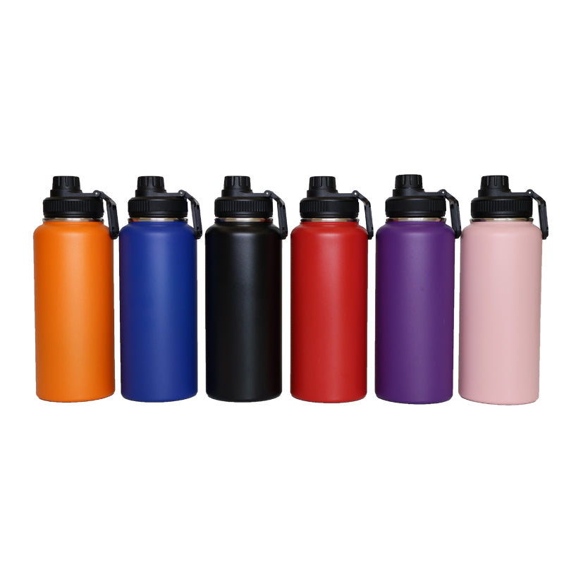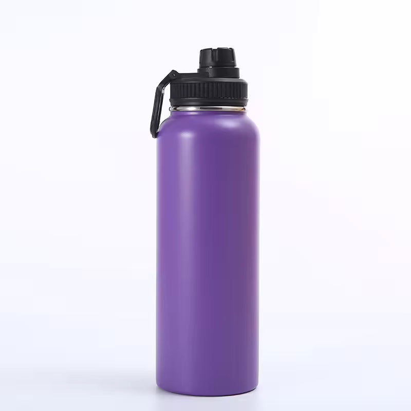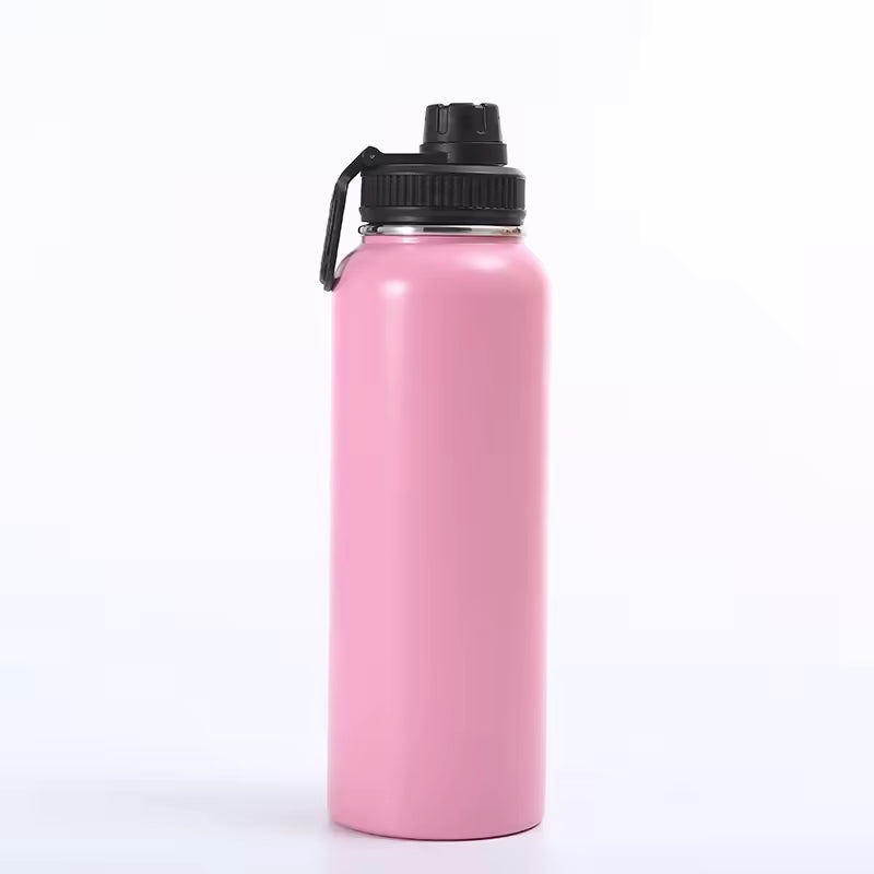 Stay hydrated all day with this 32oz insulated stainless steel water bottle, designed for durability and style. Featuring a sleek matte finish and available in vibrant colors like orange, blue, black, red, purple, and blush pink, this reusable bottle keeps drinks hot or cold for hours.
