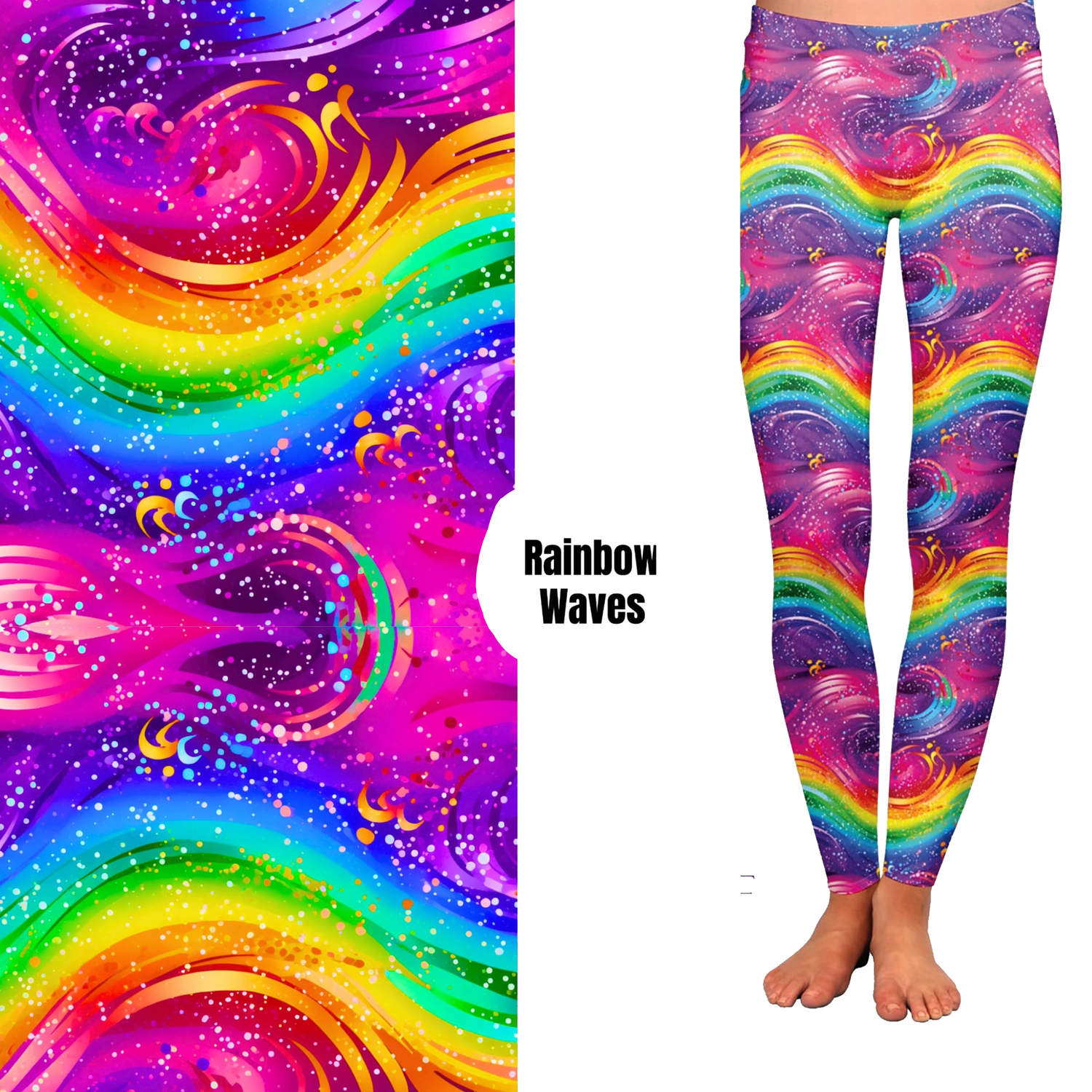 Let your personality shine bright with these mesmerizing Rainbow Waves leggings—because your fashion should be as colorful as you are!
